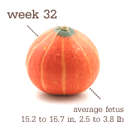 Začíná 8. měsíc a miminko už má 29 cm a váží asi 1,8 kg! Asi jako oranžová dýně! Vyvíjí se mu hlavně kostra, takže je potřeba jíst hodně vápníku!